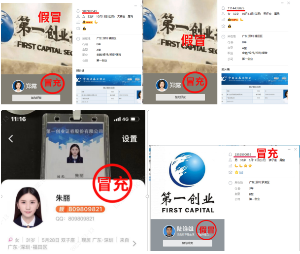 我公司就近期发现假冒第一创业证券的非法证券活动线索公示如下(包括但不限于如下信息):
