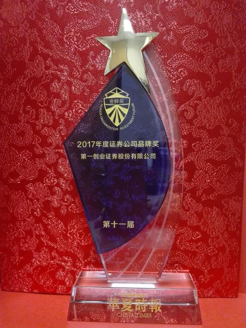 2018年1月19日,由《华夏时报》主办的“华夏机构投资者年会暨第十一届金蝉奖盛典”在北京召开。本次峰会的主题是“创赢纪:新金融产品时代”,围绕当前经济金融行业领域的热点话题展开探讨,聚焦金融科技与金融产品创新,并对优秀的行业代表进行表彰,颁发“金蝉奖”。公司以良好的资本市场形象,荣获本届“金蝉奖——2017年度证券公司品牌奖”。